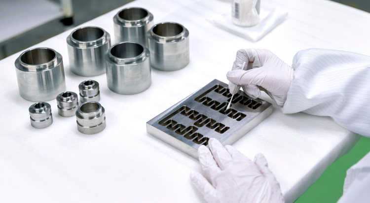 品質管理は、製品が仕様や品質基準を満たしているかをチェックする仕事。三次元測定機や各種検査機器を駆使して、高精度な品質チェックを行います。また、不良品を未然に防ぐことはもちろん、品質改善の提案も大切な役割。各部門と連携しながら、崇和のものづくり全体のレベルアップを推進しています。